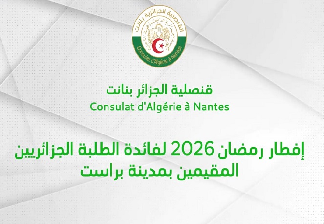 تنظيم إفطار رمضاني 2026 يجمع القنصلية الجزائرية في نانت والطلاب الجزائريين المقيمين في مدينة بريست.