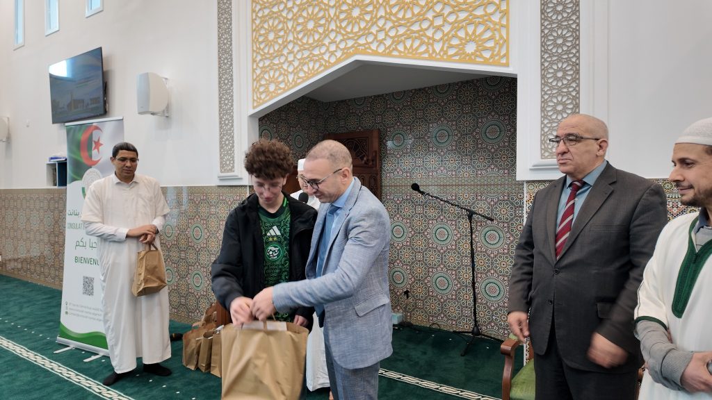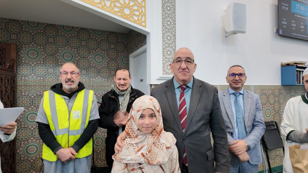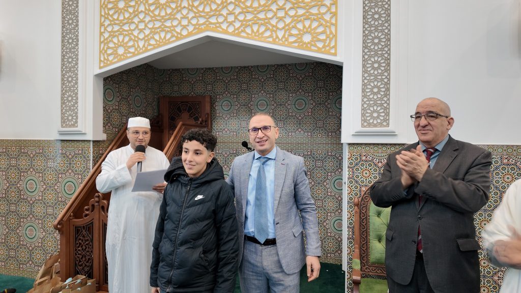 À l’issue des activités du mois sacré de Ramadan 2026, destinées aux membres de notre communauté résidant dans la circonscription consulaire de Nantes, le consulat, en collaboration avec l’Association culturelle des musulmans de Nantes Est, a organisé une cérémonie de remise de prix en l’honneur des enfants lauréats et participants au concours de récitation du Coran, toutes catégories d’âge confondues, tenue à la mosquée « Khadija » à Nantes.