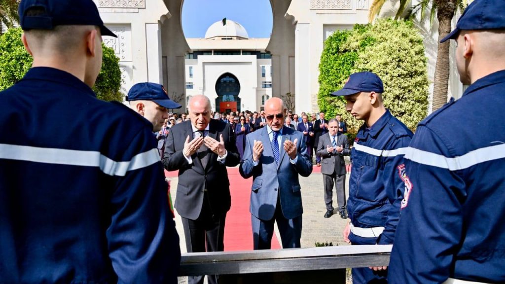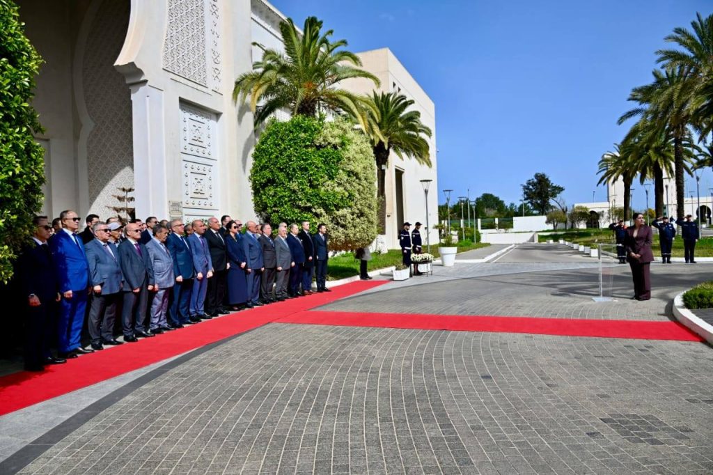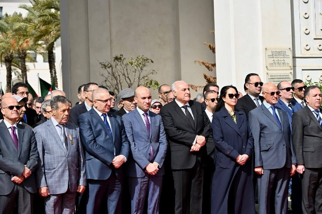 تخليدا للذكرى الرابعة والستين (64) لعيد النصر، الموافق لــ 19 مارس {1962-2026}، أشرف وزير الدولة، وزير الشؤون الخارجية والجالية الوطنية بالخارج والشؤون الإفريقية، السيد أحمد عطاف، مرفوقا بكاتب الدولة لدى وزير الشؤون الخارجية، المكلف بالجالية الوطنية بالخارج، السيد سفيان شايب، وكاتبة الدولة لدى وزير الشؤون الخارجية، المكلفة بالشؤون الإفريقية، السيدة سلمة بختة منصوري والأمين العام للوزارة، السيد لوناس مقرمان، وبحضور إطارات الوزارة، على إحياء هذه الذكرى تحت شعار: {أمجاد خالدة وانتصارات تتجدد}.